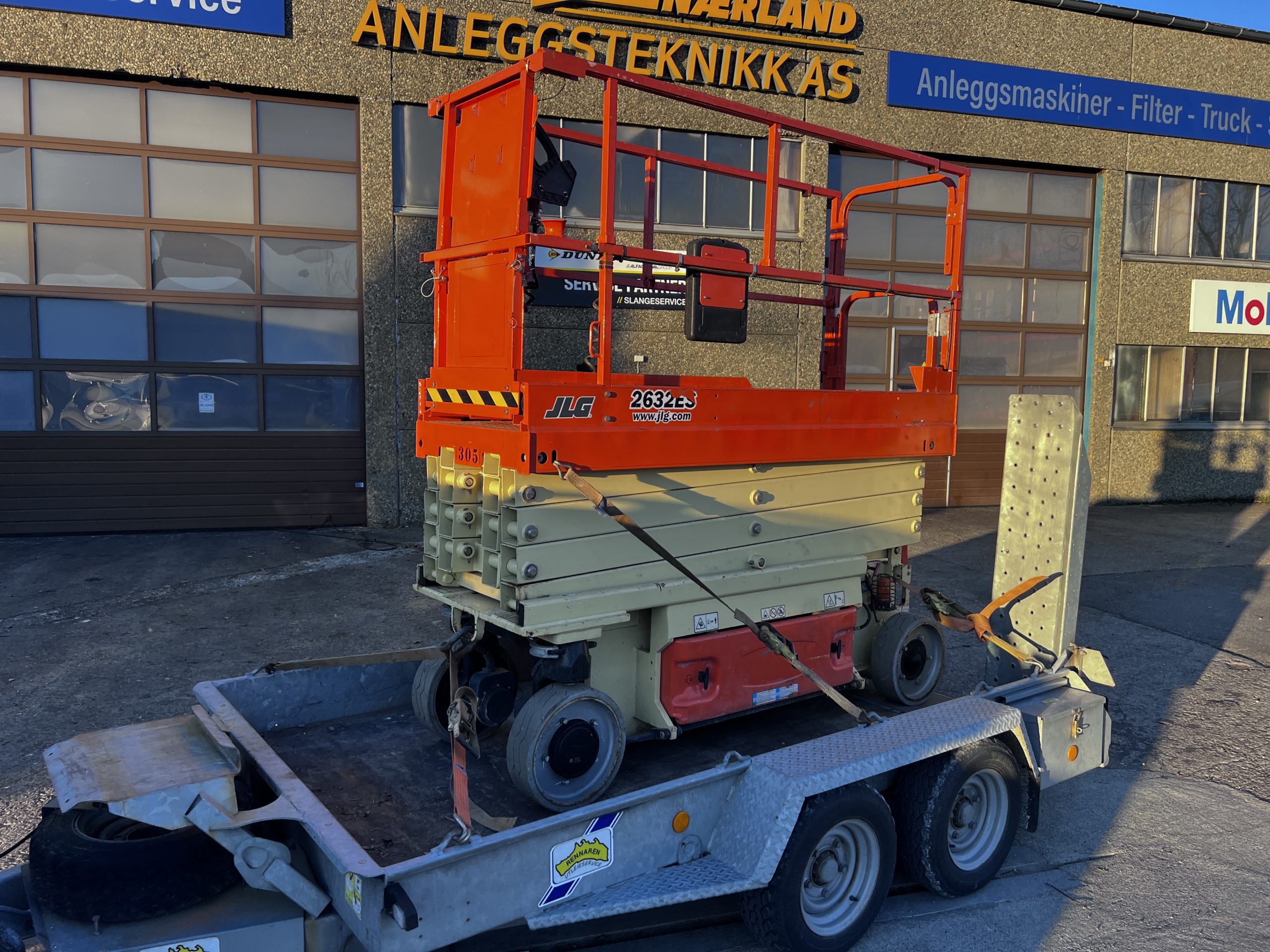 Sakselift10m kan hentes hos oss på Rennaren, den veier 3500kg inkl. lånehenger og kan trekkes med vanlig bil.